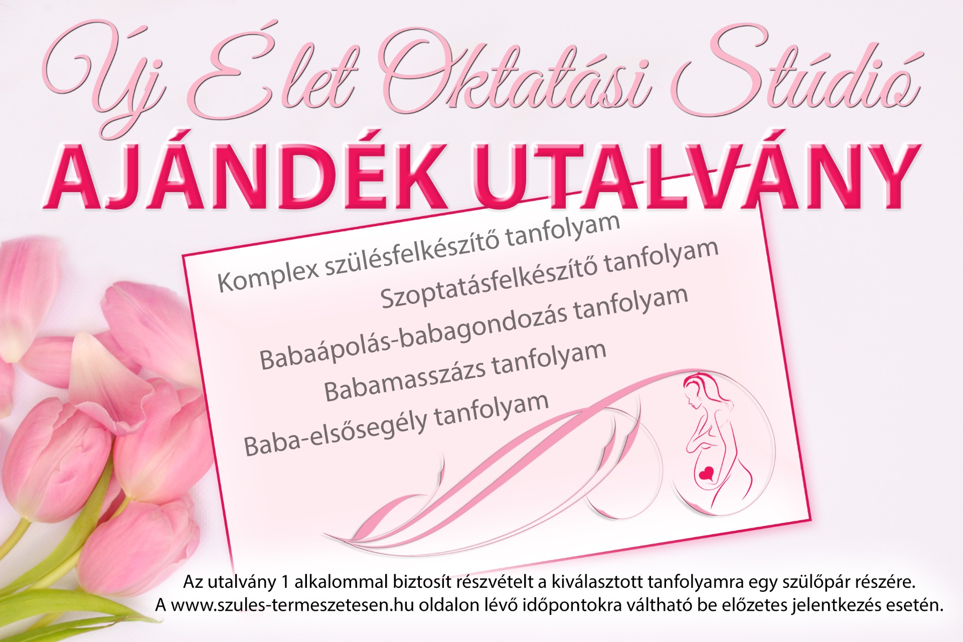 Az utalvány 1 alkalommal biztosít részvételt a szülőpárnak az előzetesen egyeztetett tanfolyamra. Ez lehet online vagy személyes tanfolyam is az utalványon felsorolt felkészítők közül: